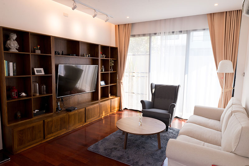 The villa provides a spacious living room come with large smart television. The kitchen fully functional for easy cooking, there is a built in oven, microwave electric stove, large refrigerator, dining table and car park. The villa also offers wireless internet access and international cable TV.